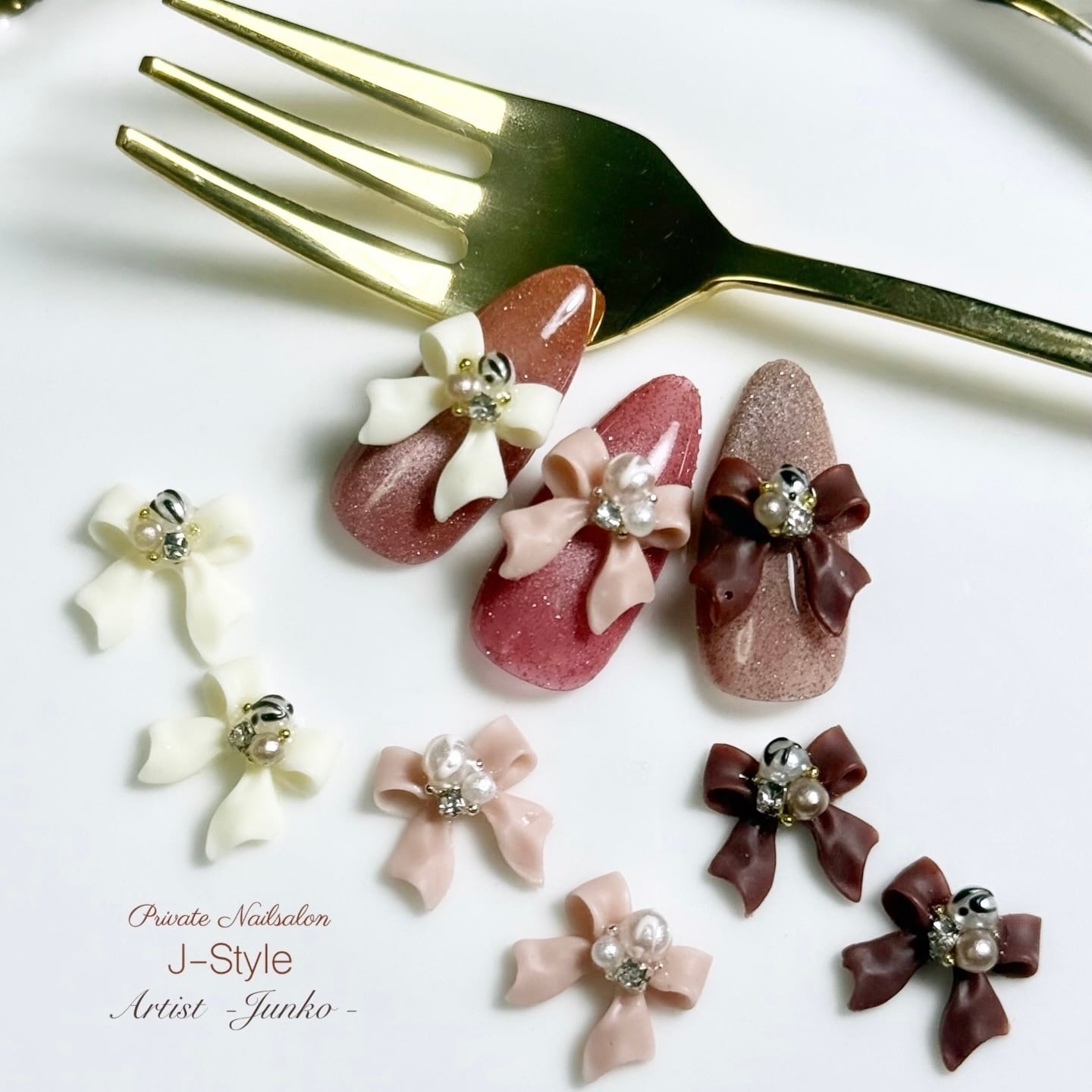 大人可愛い立体リボンネイルパーツ ୨୧ ⑅ ୨୧
